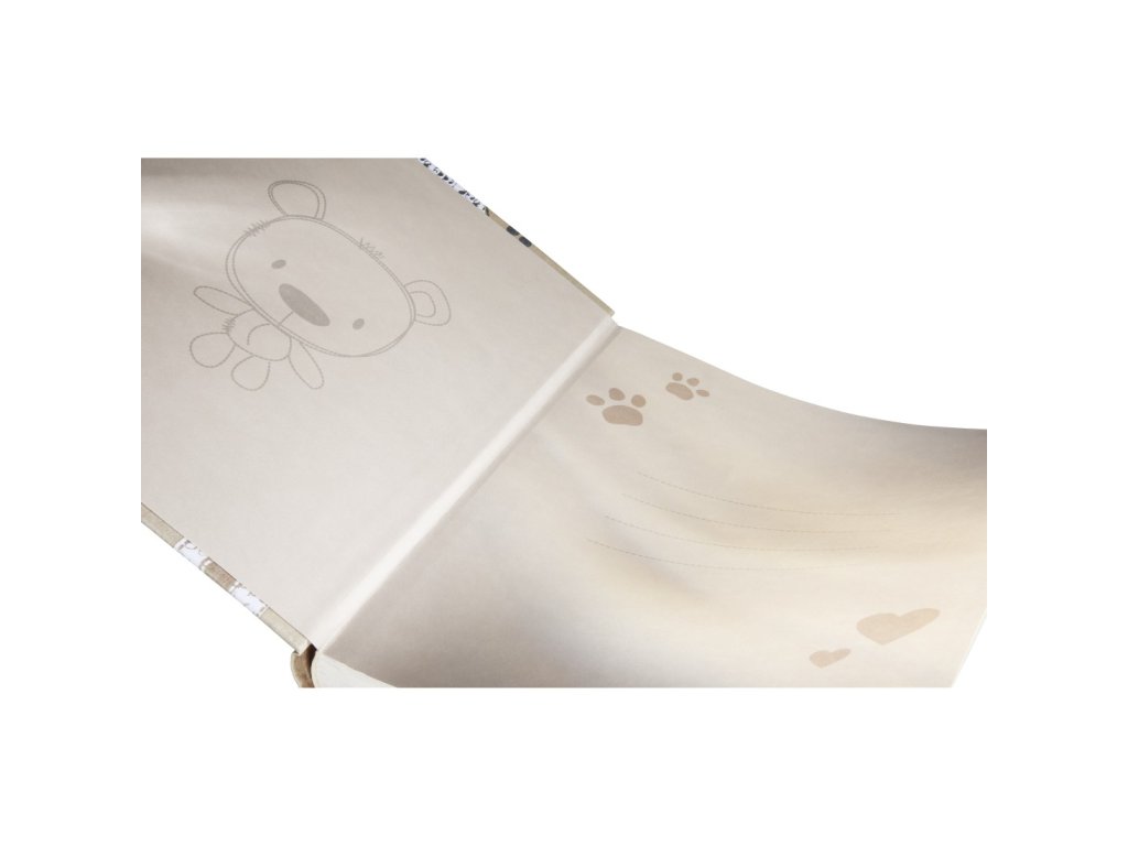 - tvrdé desky potažené tištěnou textilií s výšivkou medvídka