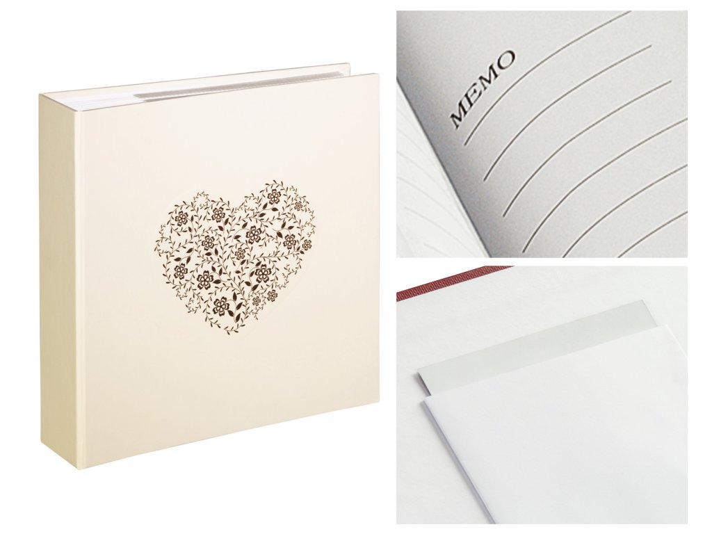 - tvrdé desky z texturovaného papíru s romantickým motivem srdce zvýrazněným lesklým povrchem