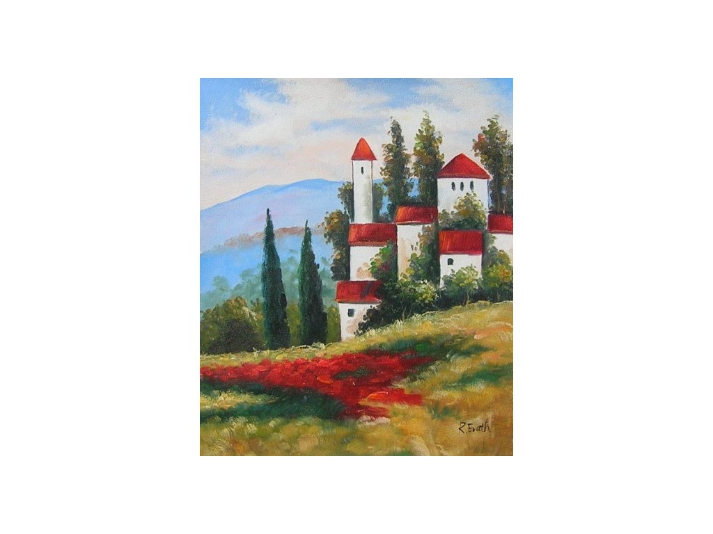 Na obraze je namalován velký bílí zámek na podzimní louce s výhledem na hory. Obraz je malovaný olejovými barvami na kvalitní malířské plátno vyšší gramáže, napnuté na vypínací (skrytý) 2 cm široký blind rám. Ten je opatřený klínky pro případné dopnutí plátna. Díky probarveným okrajům lze obraz ihned zavěsit na zeď, nebo je možné také zarámování do ozdobného rámu. Nabídku naleznete v sekci rámy a rámování. Součástí je háček určený k zavěšení obrazu.Buďte první, kdo napíše příspěvek k této položce.
