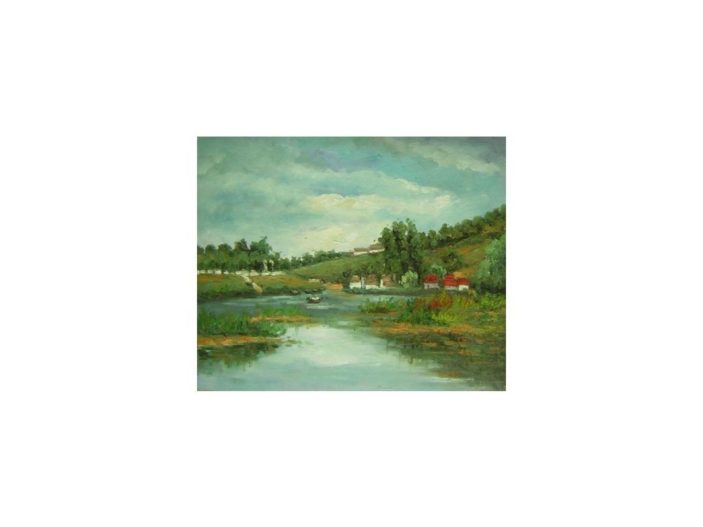 Motivem tohoto obrazu je klidná řeka. Obraz je malovaný olejovými barvami na kvalitní malířské plátno vyšší gramáže, napnuté na vypínací (skrytý) 2 cm široký blind rám. Ten je opatřený klínky pro případné dopnutí plátna. Díky probarveným okrajům lze obraz ihned zavěsit na zeď, nebo je možné také zarámování do ozdobného rámu. Nabídku naleznete v sekci rámy a rámování. Součástí je háček určený k zavěšení obrazu.Buďte první, kdo napíše příspěvek k této položce.