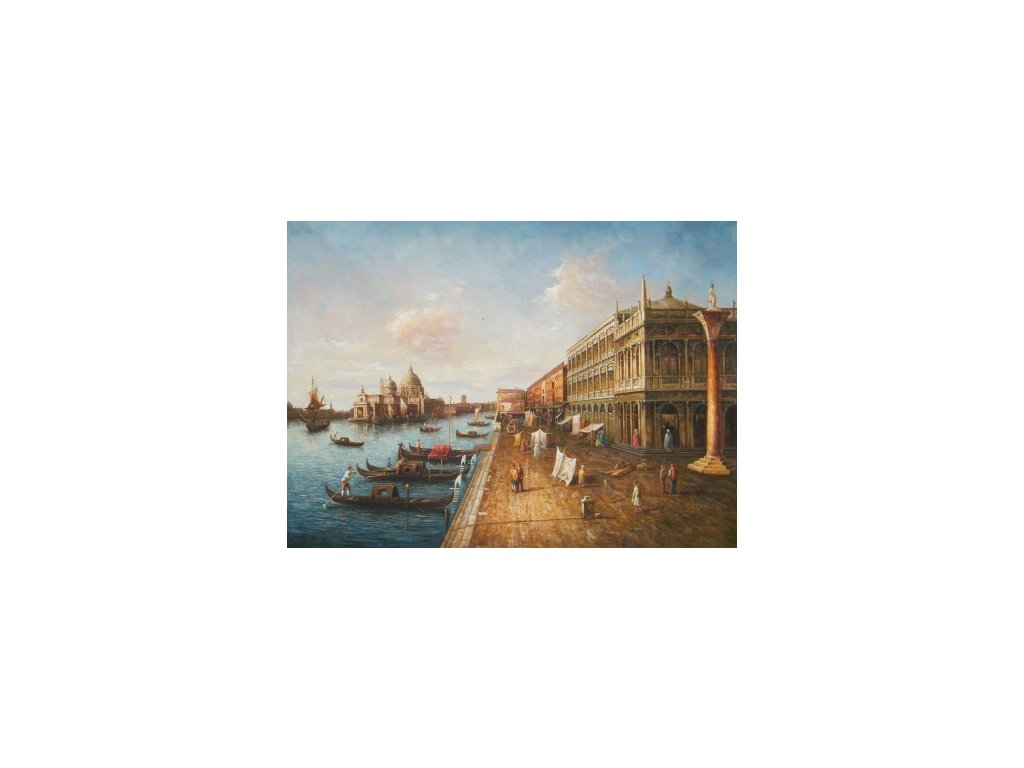 Obraz s motivem dobového přístavu s gondolami. Obraz je malovaný olejovými barvami na kvalitní malířské plátno vyšší gramáže, napnuté na vypínací (skrytý) 2 cm široký blind rám. Ten je opatřený klínky pro případné dopnutí plátna. Díky probarveným okrajům lze obraz ihned zavěsit na zeď, nebo je možné také zarámování do ozdobného rámu. Nabídku naleznete v sekci rámy a rámování. Součástí je háček určený k zavěšení obrazu.Buďte první, kdo napíše příspěvek k této položce.