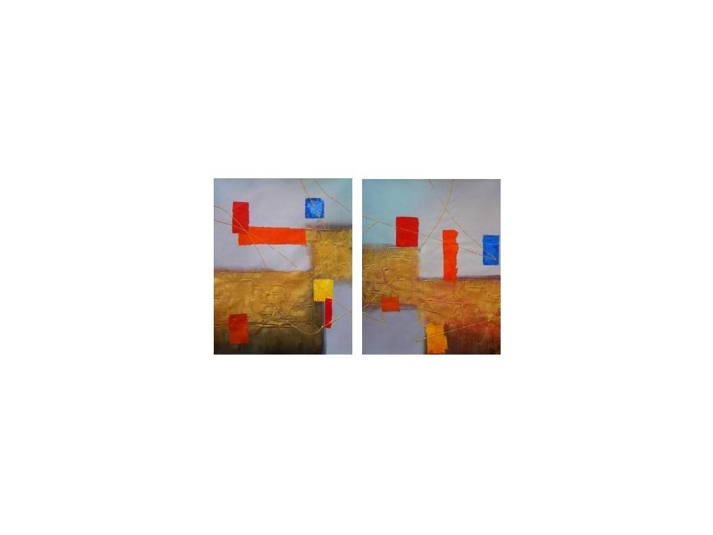 2x 50x60 cm Ručně malovaný obraz olejovými barvami, vypnutý v dřevěném rámu s motivem abstrakce. Dílo je rozděleno do dvou samostatných obrazů, kdy každý má rozměr 50 x 60 cm