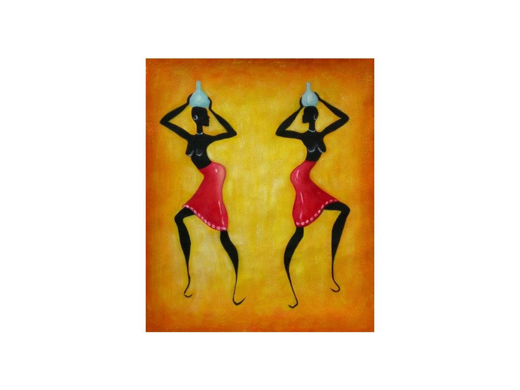 Na obraze jsou namalovány dvě domorodé tanečnice. Obraz je malovaný olejovými barvami na kvalitní malířské plátno vyšší gramáže, napnuté na vypínací (skrytý) 2 cm široký blind rám. Ten je opatřený klínky pro případné dopnutí plátna. Díky probarveným okrajům lze obraz ihned zavěsit na zeď, nebo je možné také zarámování do ozdobného rámu. Nabídku naleznete v sekci rámy a rámování. Součástí je háček určený k zavěšení obrazu.Buďte prvý, kto napíše príspevok k tejto položke.