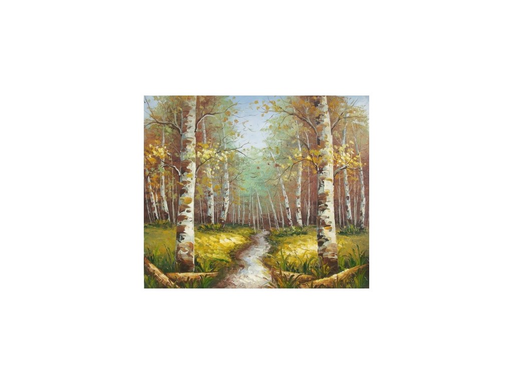 Na obraze je namalován březový háj. Obraz je malovaný olejovými barvami na kvalitní malířské plátno vyšší gramáže, napnuté na vypínací (skrytý) 2 cm široký blind rám. Ten je opatřený klínky pro případné dopnutí plátna. Díky probarveným okrajům lze obraz ihned zavěsit na zeď, nebo je možné také zarámování do ozdobného rámu. Nabídku naleznete v sekci rámy a rámování. Součástí je háček určený k zavěšení obrazu.
