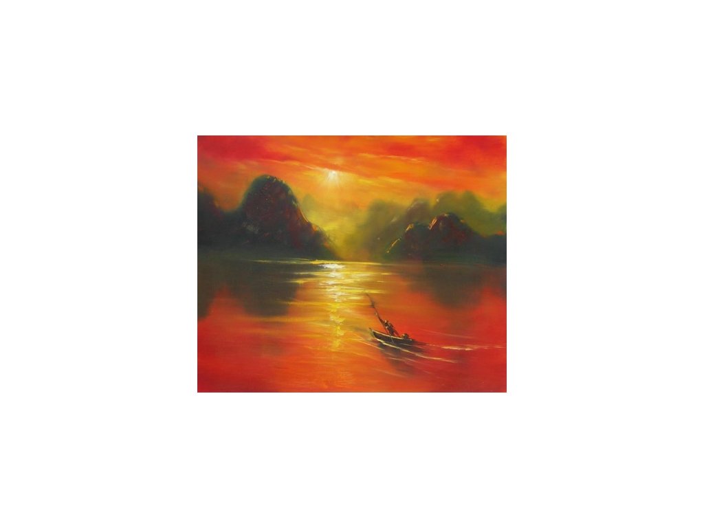 Na obraze jsou namalovány červánky na klidném jezeře. Obraz je malovaný olejovými barvami na kvalitní malířské plátno vyšší gramáže, napnuté na vypínací (skrytý) 2 cm široký blind rám. Ten je opatřený klínky pro případné dopnutí plátna. Díky probarveným okrajům lze obraz ihned zavěsit na zeď, nebo je možné také zarámování do ozdobného rámu. Nabídku naleznete v sekci rámy a rámování. Součástí je háček určený k zavěšení obrazu.