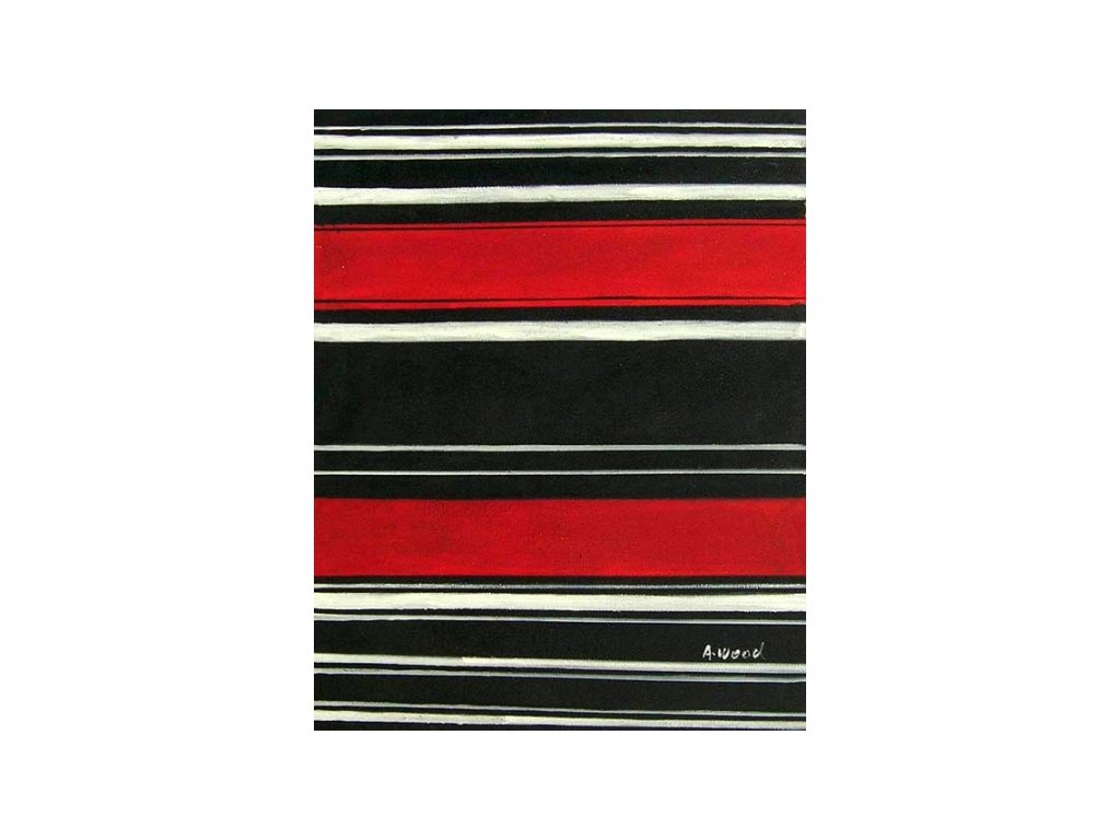 Na obraze je namalována abstrakce složená z černých a červených pruhů. Obraz je malovaný olejovými barvami na kvalitní malířské plátno vyšší gramáže, napnuté na vypínací (skrytý) 2 cm široký blind rám. Ten je opatřený klínky pro případné dopnutí plátna. Díky probarveným okrajům lze obraz ihned zavěsit na zeď, nebo je možné také zarámování do ozdobného rámu. Nabídku naleznete v sekci rámy a rámování. Součástí je háček určený k zavěšení obrazu.