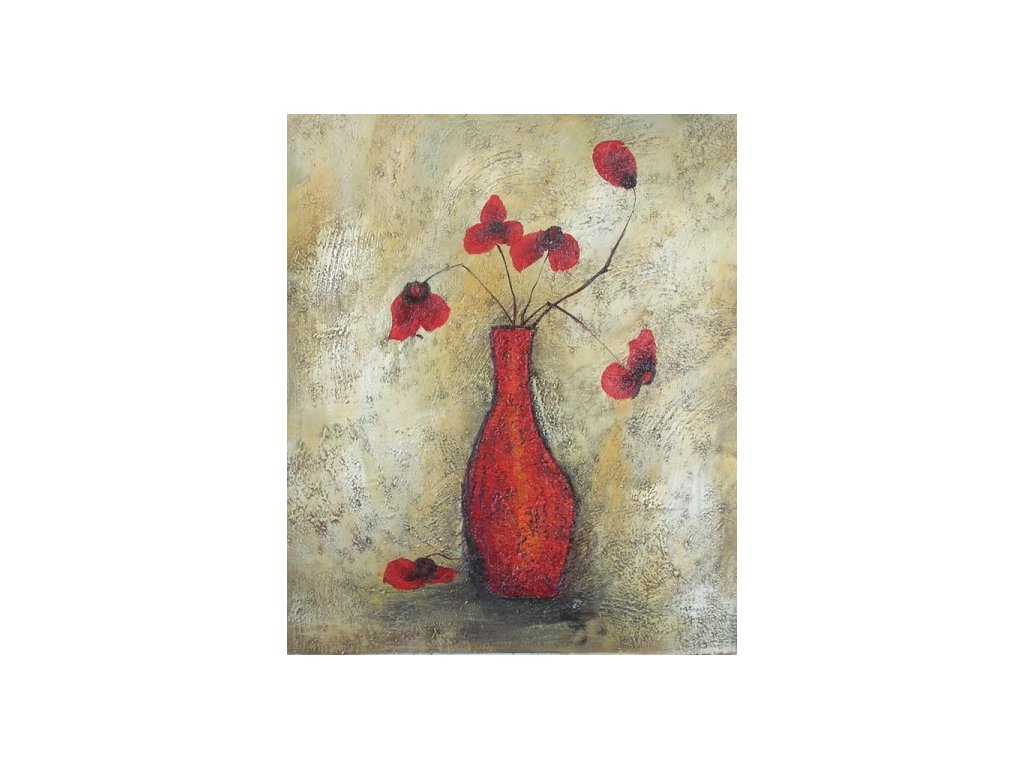 Motivem obrazu je červená váza s červenými květy. Obraz je malovaný olejovými barvami na kvalitní malířské plátno vyšší gramáže, napnuté na vypínací (skrytý) 2 cm široký blind rám. Ten je opatřený klínky pro případné dopnutí plátna. Díky probarveným okrajům lze obraz ihned zavěsit na zeď, nebo je možné také zarámování do ozdobného rámu. Nabídku naleznete v sekci rámy a rámování. Součástí je háček určený k zavěšení obrazu.Buďte prvý, kto napíše príspevok k tejto položke.