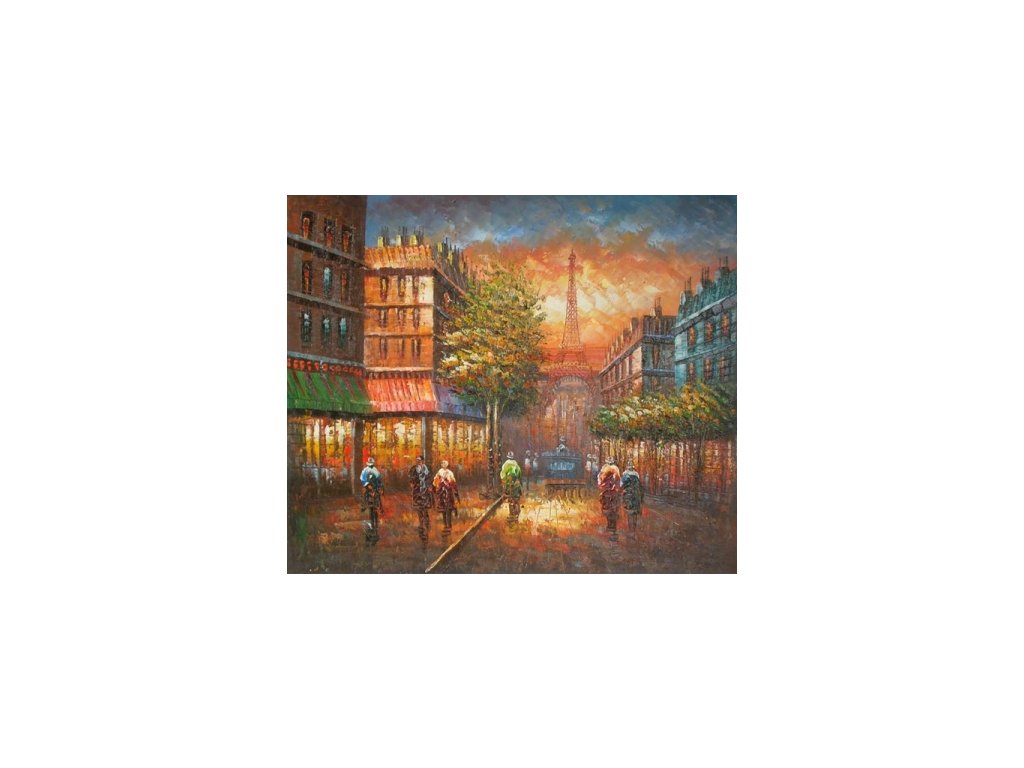 Motivem obrazu je ulice vedoucí k Eiffelově věži. Obraz je malovaný olejovými barvami na kvalitní malířské plátno vyšší gramáže, napnuté na vypínací (skrytý) 2 cm široký blind rám. Ten je opatřený klínky pro případné dopnutí plátna. Díky probarveným okrajům lze obraz ihned zavěsit na zeď, nebo je možné také zarámování do ozdobného rámu. Nabídku naleznete v sekci rámy a rámování. Součástí je háček určený k zavěšení obrazu.Buďte prvý, kto napíše príspevok k tejto položke.