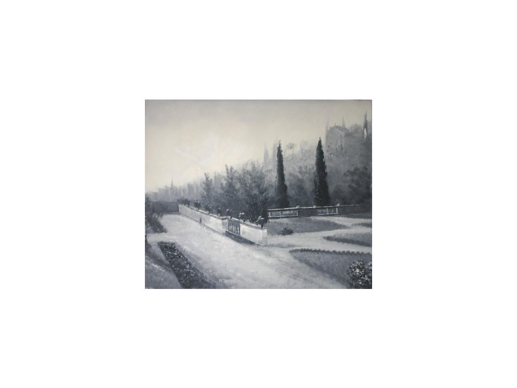 Motivem obrazu je snová cesta v černobílém provedení. Obraz je malovaný olejovými barvami na kvalitní malířské plátno vyšší gramáže, napnuté na vypínací (skrytý) 2 cm široký blind rám. Ten je opatřený klínky pro případné dopnutí plátna. Díky probarveným okrajům lze obraz ihned zavěsit na zeď, nebo je možné také zarámování do ozdobného rámu. Nabídku naleznete v sekci rámy a rámování. Součástí je háček určený k zavěšení obrazu.