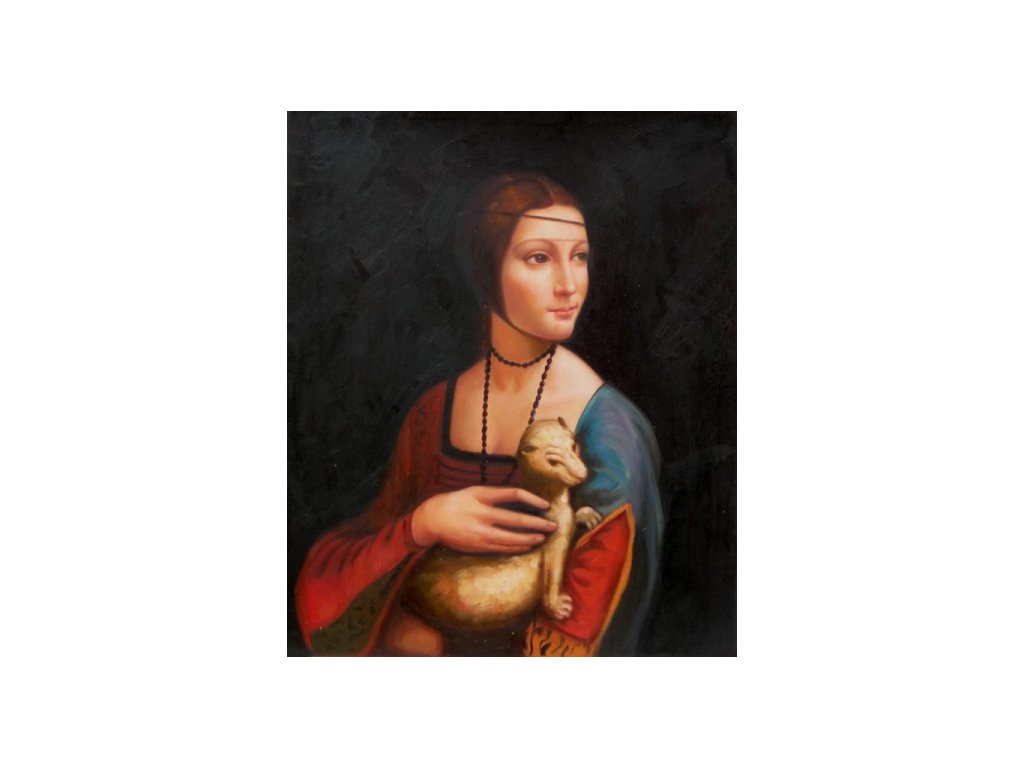 Obraz s motivem Dámy s hranostajem, kterou v originále namaloval Leonardo da Vinci. Obraz je malovaný olejovými barvami na kvalitní malířské plátno vyšší gramáže, napnuté na vypínací (skrytý) 2 cm široký blind rám. Ten je opatřený klínky pro případné dopnutí plátna. Díky probarveným okrajům lze obraz ihned zavěsit na zeď, nebo je možné také zarámování do ozdobného rámu. Nabídku naleznete v sekci rámy a rámování. Součástí je háček určený k zavěšení obrazu.Buďte prvý, kto napíše príspevok k tejto položke.