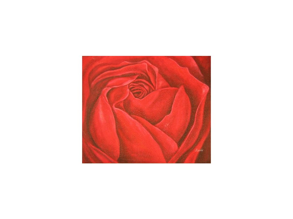 Hlavním motivem je červený detail rozvité růže . Obraz je malovaný olejovými barvami na kvalitní malířské plátno vyšší gramáže, napnuté na vypínací (skrytý) 2 cm široký blind rám. Ten je opatřený klínky pro případné dopnutí plátna. Díky probarveným okrajům lze obraz ihned zavěsit na zeď, nebo je možné také zarámování do ozdobného rámu. Nabídku naleznete v sekci rámy a rámování. Součástí je háček určený k zavěšení obrazu.