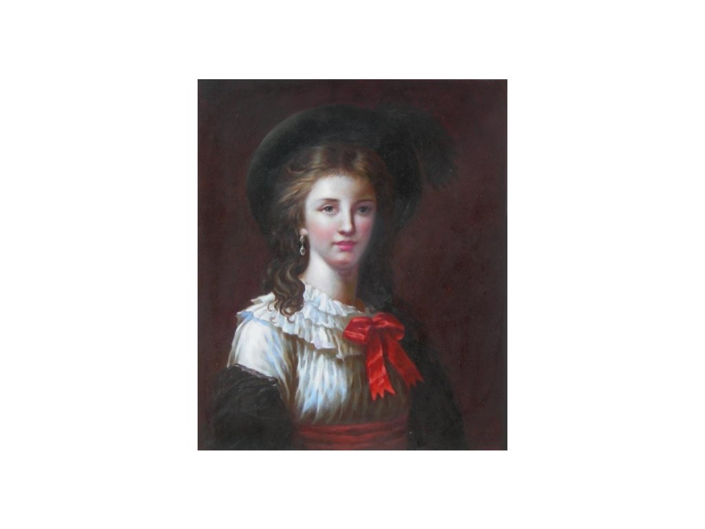 Obraz s motivem dívky s kloboukem, který znázorňuje malířku Elisabeth Louise Viggée Le Brun ve věku 26 let. Obraz je malovaný olejovými barvami na kvalitní malířské plátno vyšší gramáže, napnuté na vypínací (skrytý) 2 cm široký blind rám. Ten je opatřený klínky pro případné dopnutí plátna. Díky probarveným okrajům lze obraz ihned zavěsit na zeď, nebo je možné také zarámování do ozdobného rámu. Nabídku naleznete v sekci rámy a rámování. Součástí je háček určený k zavěšení obrazu.Buďte prvý, kto napíše príspevok k tejto položke.