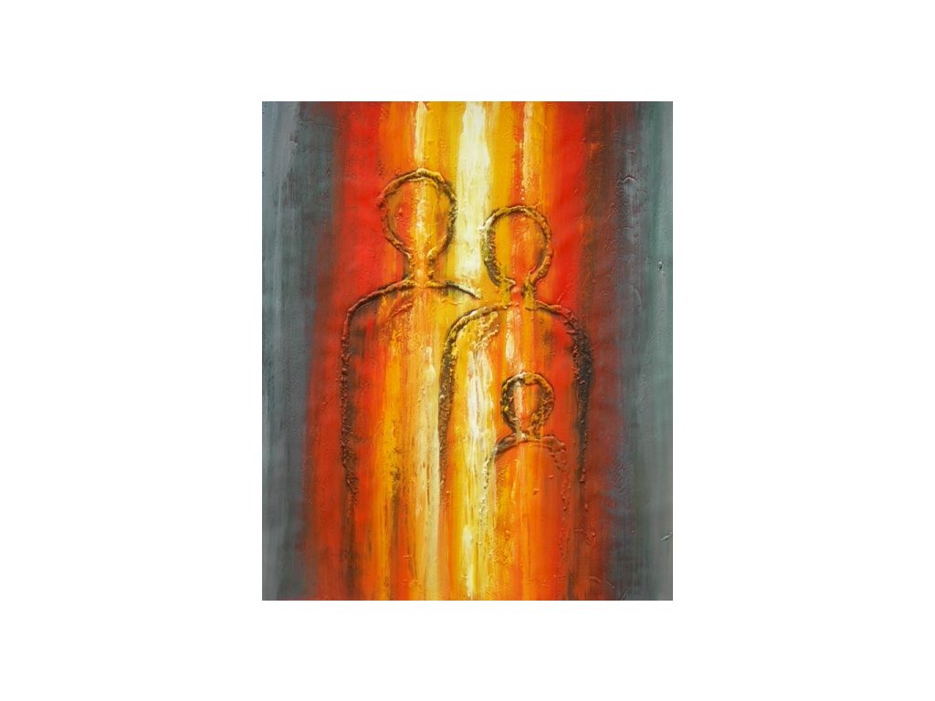 Na obraze jsou namalované postavy evokující rodinu. Obraz je malovaný olejovými barvami na kvalitní malířské plátno vyšší gramáže, napnuté na vypínací (skrytý) 2 cm široký blind rám. Ten je opatřený klínky pro případné dopnutí plátna. Díky probarveným okrajům lze obraz ihned zavěsit na zeď, nebo je možné také zarámování do ozdobného rámu. Nabídku naleznete v sekci rámy a rámování. Součástí je háček určený k zavěšení obrazu.