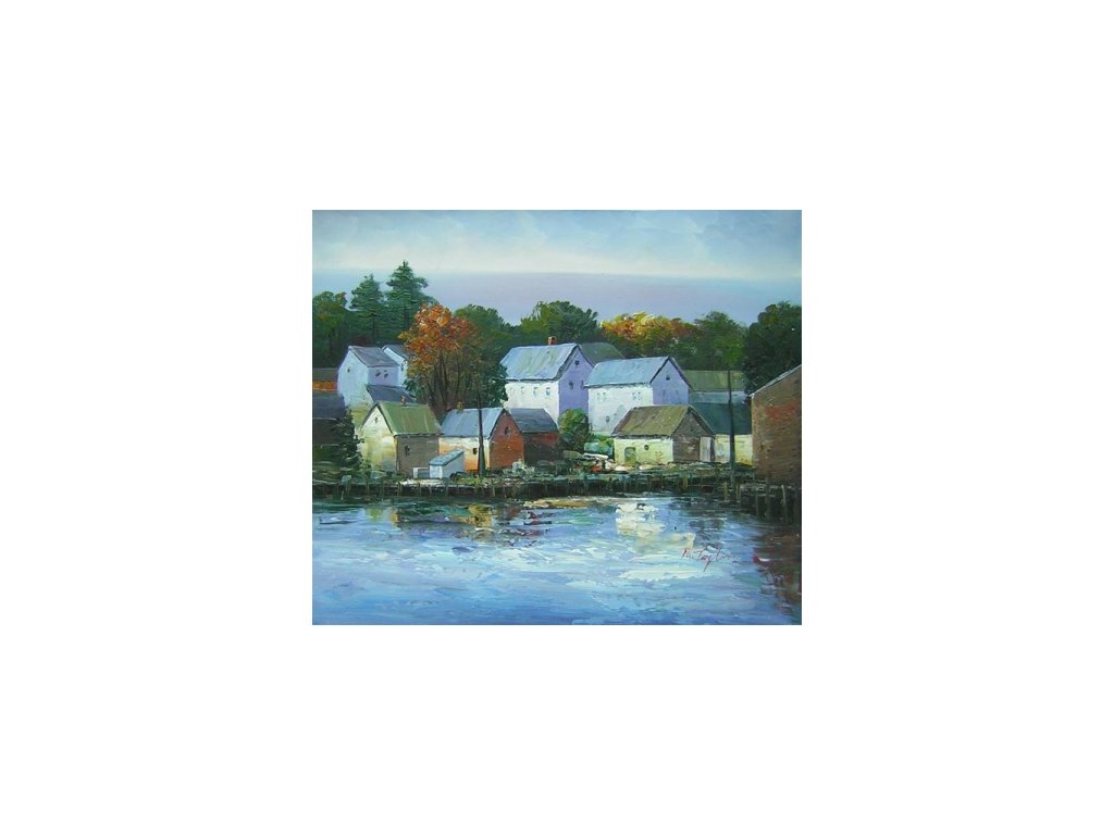 Motivem tohoto obrazu je vesnice u břehu jezera. Obraz je malovaný olejovými barvami na kvalitní malířské plátno vyšší gramáže, napnuté na vypínací (skrytý) 2 cm široký blind rám. Ten je opatřený klínky pro případné dopnutí plátna. Díky probarveným okrajům lze obraz ihned zavěsit na zeď, nebo je možné také zarámování do ozdobného rámu. Nabídku naleznete v sekci rámy a rámování. Součástí je háček určený k zavěšení obrazu.Buďte prvý, kto napíše príspevok k tejto položke.