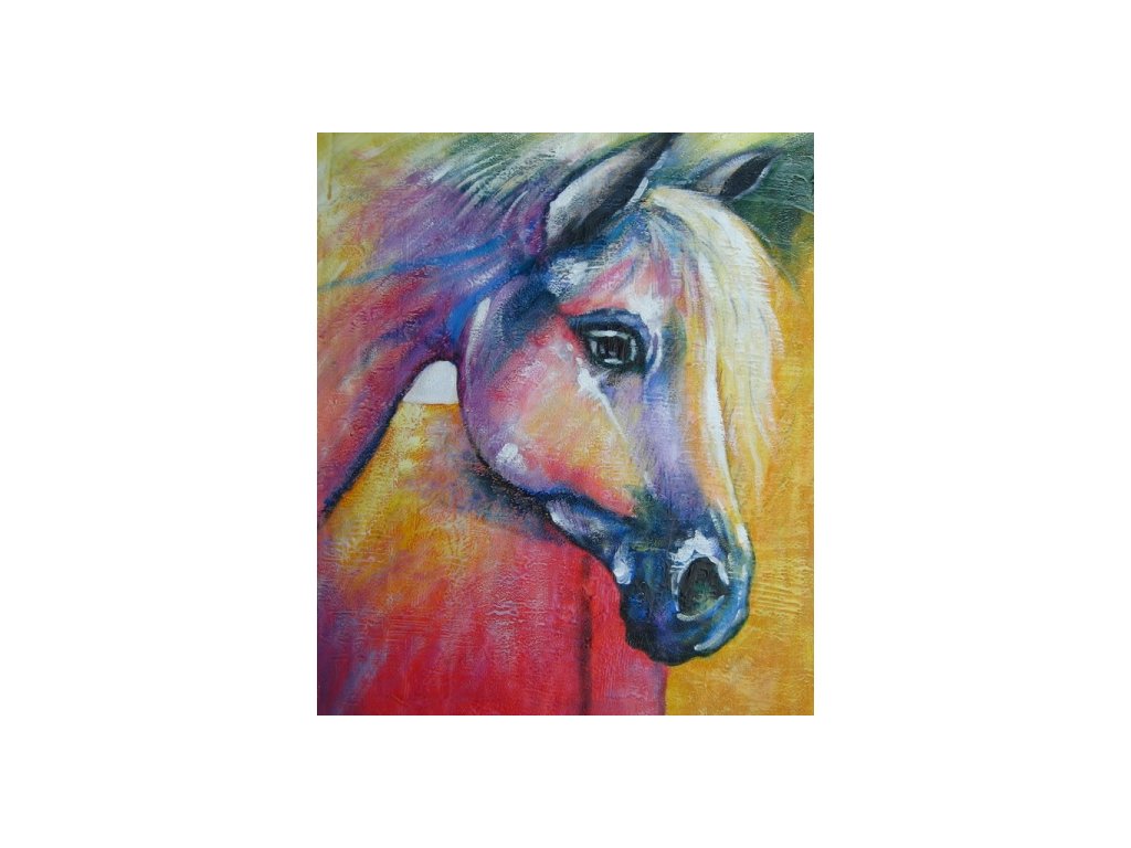 Motivem je hlavy koně v duhovém barevném provedení. Obraz je malovaný olejovými barvami na kvalitní malířské plátno vyšší gramáže, napnuté na vypínací (skrytý) 2 cm široký blind rám. Ten je opatřený klínky pro případné dopnutí plátna. Díky probarveným okrajům lze obraz ihned zavěsit na zeď, nebo je možné také zarámování do ozdobného rámu. Nabídku naleznete v sekci rámy a rámování. Součástí je háček určený k zavěšení obrazu.Buďte prvý, kto napíše príspevok k tejto položke.