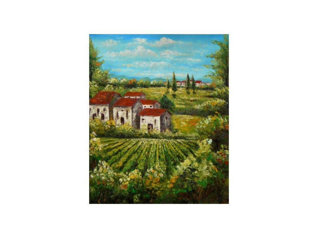 Na obraze je namalován pohled na dům stojící na vinici. Obraz je malovaný olejovými barvami na kvalitní malířské plátno vyšší gramáže, napnuté na vypínací (skrytý) 2 cm široký blind rám. Ten je opatřený klínky pro případné dopnutí plátna. Díky probarveným okrajům lze obraz ihned zavěsit na zeď, nebo je možné také zarámování do ozdobného rámu. Nabídku naleznete v sekci rámy a rámování. Součástí je háček určený k zavěšení obrazu.Buďte prvý, kto napíše príspevok k tejto položke.