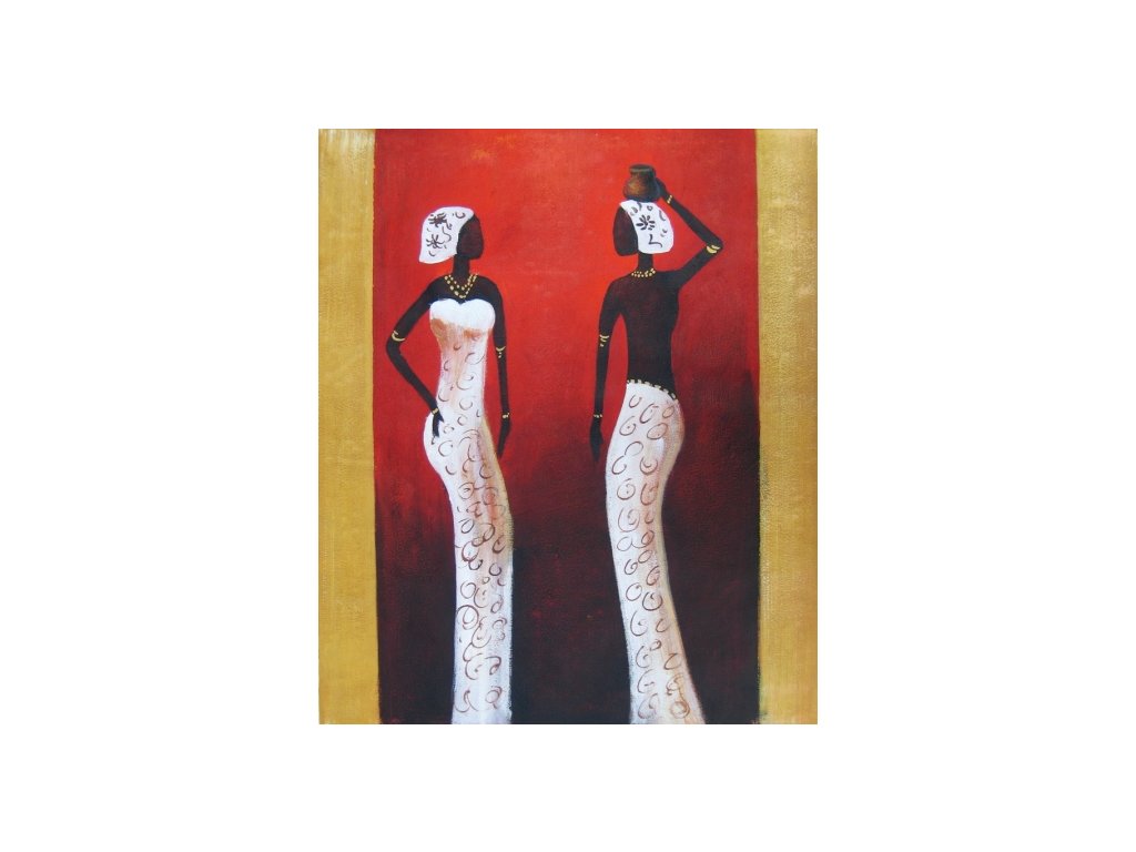 Motivem tohoto obrazu jsou dvě dámy v bílých šatech. Obraz je malovaný olejovými barvami na kvalitní malířské plátno vyšší gramáže, napnuté na vypínací (skrytý) 2 cm široký blind rám. Ten je opatřený klínky pro případné dopnutí plátna. Díky probarveným okrajům lze obraz ihned zavěsit na zeď, nebo je možné také zarámování do ozdobného rámu. Nabídku naleznete v sekci rámy a rámování. Součástí je háček určený k zavěšení obrazu.