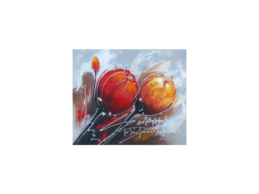 Na obraze je namalován motiv dvou velkých červených květů v moderních barvách. Obraz je malovaný olejovými barvami na kvalitní malířské plátno vyšší gramáže, napnuté na vypínací (skrytý) 2 cm široký blind rám. Ten je opatřený klínky pro případné dopnutí plátna. Díky probarveným okrajům lze obraz ihned zavěsit na zeď, nebo je možné také zarámování do ozdobného rámu. Nabídku naleznete v sekci rámy a rámování. Součástí je háček určený k zavěšení obrazu.Buďte prvý, kto napíše príspevok k tejto položke.