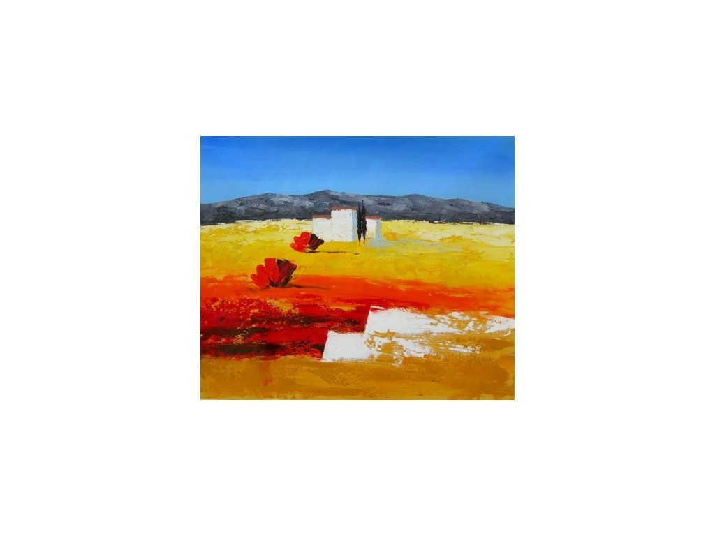 Na obraze je namalován barevná krajina. Obraz je malovaný olejovými barvami na kvalitní malířské plátno vyšší gramáže, napnuté na vypínací (skrytý) 2 cm široký blind rám. Ten je opatřený klínky pro případné dopnutí plátna. Díky probarveným okrajům lze obraz ihned zavěsit na zeď, nebo je možné také zarámování do ozdobného rámu. Nabídku naleznete v sekci rámy a rámování. Součástí je háček určený k zavěšení obrazu.Buďte prvý, kto napíše príspevok k tejto položke.