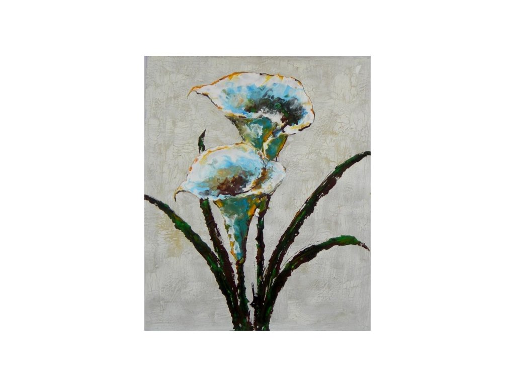 Hlavním motivem jsou dva květy. Obraz je malovaný olejovými barvami na kvalitní malířské plátno vyšší gramáže, napnuté na vypínací (skrytý) 2 cm široký blind rám. Ten je opatřený klínky pro případné dopnutí plátna. Díky probarveným okrajům lze obraz ihned zavěsit na zeď, nebo je možné také zarámování do ozdobného rámu. Nabídku naleznete v sekci rámy a rámování. Součástí je háček určený k zavěšení obrazu.Buďte prvý, kto napíše príspevok k tejto položke.