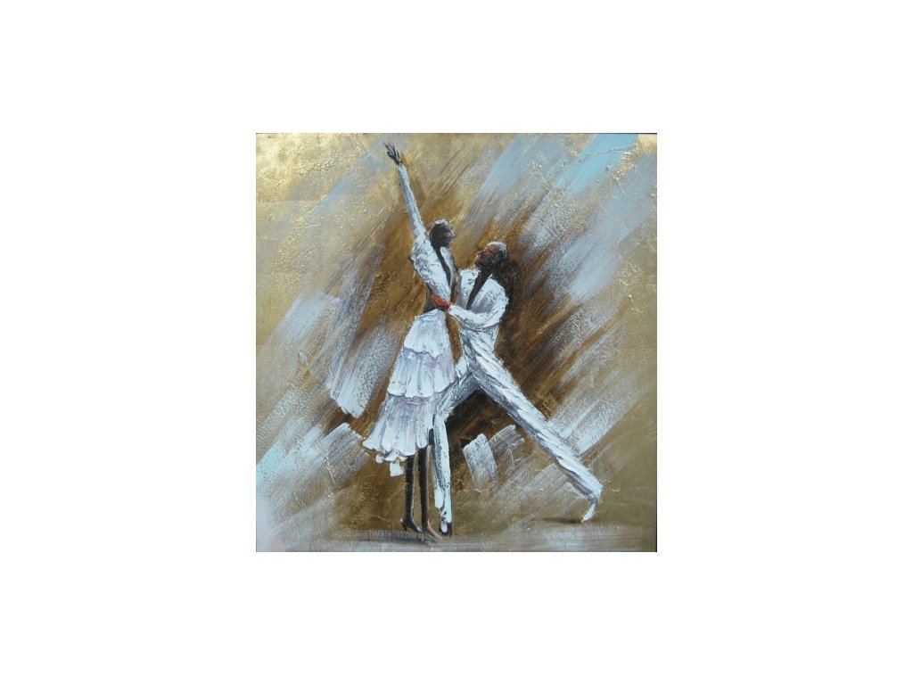 Na obraze je zachycena dvojice při tanci. Obraz je malovaný olejovými barvami na kvalitní malířské plátno vyšší gramáže, napnuté na vypínací (skrytý) 2 cm široký blind rám. Ten je opatřený klínky pro případné dopnutí plátna. Díky probarveným okrajům lze obraz ihned zavěsit na zeď, nebo je možné také zarámování do ozdobného rámu. Nabídku naleznete v sekci rámy a rámování. Součástí je háček určený k zavěšení obrazu.Buďte prvý, kto napíše príspevok k tejto položke.