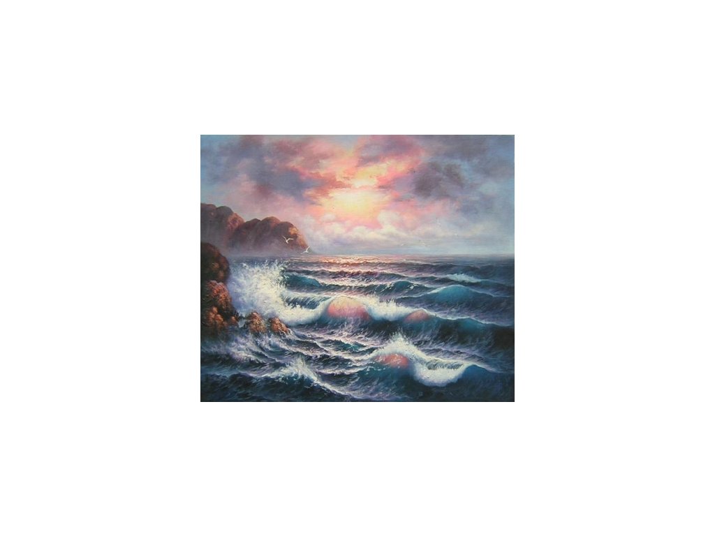 Motivem obrazu je úsvit u moře. Obraz je malovaný olejovými barvami na kvalitní malířské plátno vyšší gramáže, napnuté na vypínací (skrytý) 2 cm široký blind rám. Ten je opatřený klínky pro případné dopnutí plátna. Díky probarveným okrajům lze obraz ihned zavěsit na zeď, nebo je možné také zarámování do ozdobného rámu. Nabídku naleznete v sekci rámy a rámování. Součástí je háček určený k zavěšení obrazu.Buďte prvý, kto napíše príspevok k tejto položke.
