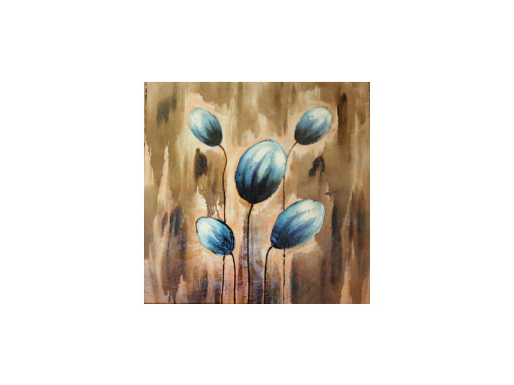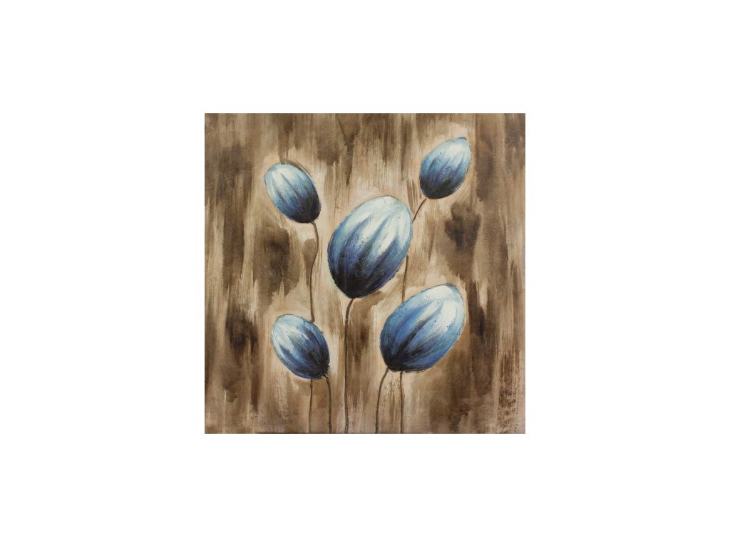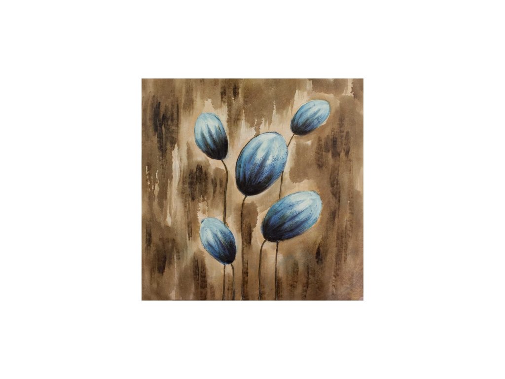 Ručně malovaný obraz olejovými barvami, vypnutý na dřevěném vypínacím blind rámu s vypínacími klínky, které umožní případnou korekci plátna. Motivem tohoto obrazu jsou modré květy na hnědém pozadí. Obraz je možné zarámovat do dřevěného ozdobného rámu, nebo jej opatřit dřevěnou ozdobnou lištou. Obraz je skladem k okamžitému dodání. Velikost obrazu 70 x 70 cm.