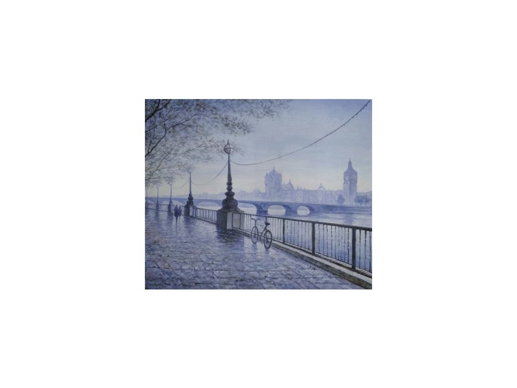 Poklidný mlžný den u řeky. Obraz je malovaný olejovými barvami na kvalitní malířské plátno vyšší gramáže, napnuté na vypínací (skrytý) 2 cm široký blind rám. Ten je opatřený klínky pro případné dopnutí plátna. Díky probarveným okrajům lze obraz ihned zavěsit na zeď, nebo je možné také zarámování do ozdobného rámu. Nabídku naleznete v sekci rámy a rámování. Součástí je háček určený k zavěšení obrazu.Buďte prvý, kto napíše príspevok k tejto položke.