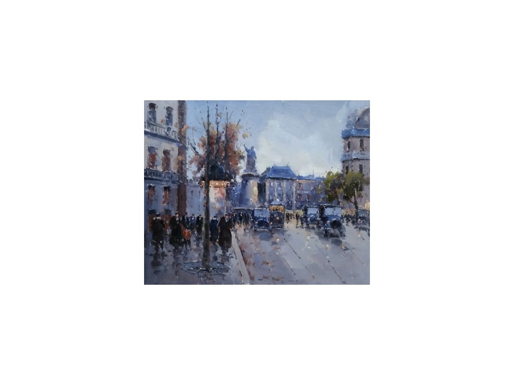 Na obraze je zachycena nálada podvečerního města, zachycující lidi vracející se domů. Obraz je malovaný olejovými barvami na kvalitní malířské plátno vyšší gramáže, napnuté na vypínací (skrytý) 2 cm široký blind rám. Ten je opatřený klínky pro případné dopnutí plátna. Díky probarveným okrajům lze obraz ihned zavěsit na zeď, nebo je možné také zarámování do ozdobného rámu. Nabídku naleznete v sekci rámy a rámování. Součástí je háček určený k zavěšení obrazu.Buďte prvý, kto napíše príspevok k tejto položke.
