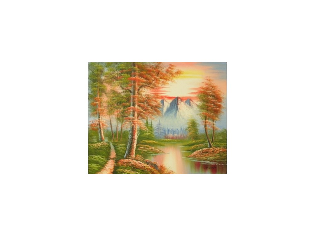 Na obraze je namalována řeka linoucí se podhorskou krajinou. Obraz je malovaný olejovými barvami na kvalitní malířské plátno vyšší gramáže, napnuté na vypínací (skrytý) 2 cm široký blind rám. Ten je opatřený klínky pro případné dopnutí plátna. Díky probarveným okrajům lze obraz ihned zavěsit na zeď, nebo je možné také zarámování do ozdobného rámu. Nabídku naleznete v sekci rámy a rámování. Součástí je háček určený k zavěšení obrazu. Velikost obrazu 50 x 60 cm.