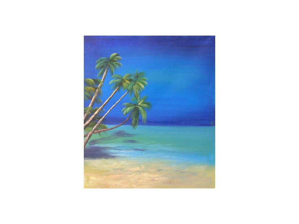 Na obraze je namalováno opuštěné pobřeží s palmami. Obraz je malovaný olejovými barvami na kvalitní malířské plátno vyšší gramáže, napnuté na vypínací (skrytý) 2 cm široký blind rám. Ten je opatřený klínky pro případné dopnutí plátna. Díky probarveným okrajům lze obraz ihned zavěsit na zeď, nebo je možné také zarámování do ozdobného rámu. Nabídku naleznete v sekci rámy a rámování. Součástí je háček určený k zavěšení obrazu.Buďte prvý, kto napíše príspevok k tejto položke.