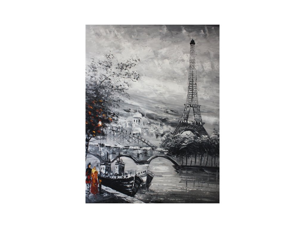 Motiv Eiffelovi věže v černobílém provedení s červenými prvky. Obraz je malovaný olejovými barvami na kvalitní malířské plátno vyšší gramáže, napnuté na vypínací (skrytý) 2 cm široký blind rám. Ten je opatřený klínky pro případné dopnutí plátna. Díky probarveným okrajům lze obraz ihned zavěsit na zeď, nebo je možné také zarámování do ozdobného rámu. Nabídku naleznete v sekci rámy a rámování. Součástí je háček určený k zavěšení obrazu. Velikost obrazu je 120 x 90 cm.