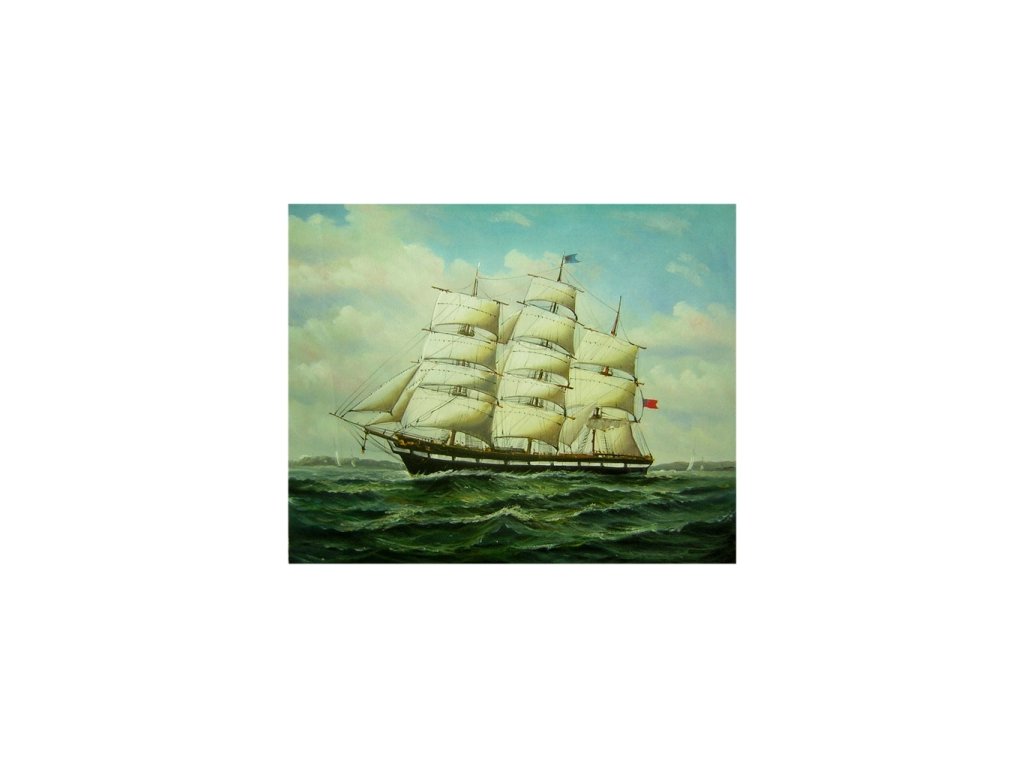 Obraz s motivem plachetnice plující po moři. Obraz je malovaný olejovými barvami na kvalitní malířské plátno vyšší gramáže, napnuté na vypínací (skrytý) 2 cm široký blind rám. Ten je opatřený klínky pro případné dopnutí plátna. Díky probarveným okrajům lze obraz ihned zavěsit na zeď, nebo je možné také zarámování do ozdobného rámu. Nabídku naleznete v sekci rámy a rámování. Součástí je háček určený k zavěšení obrazu.Buďte prvý, kto napíše príspevok k tejto položke.