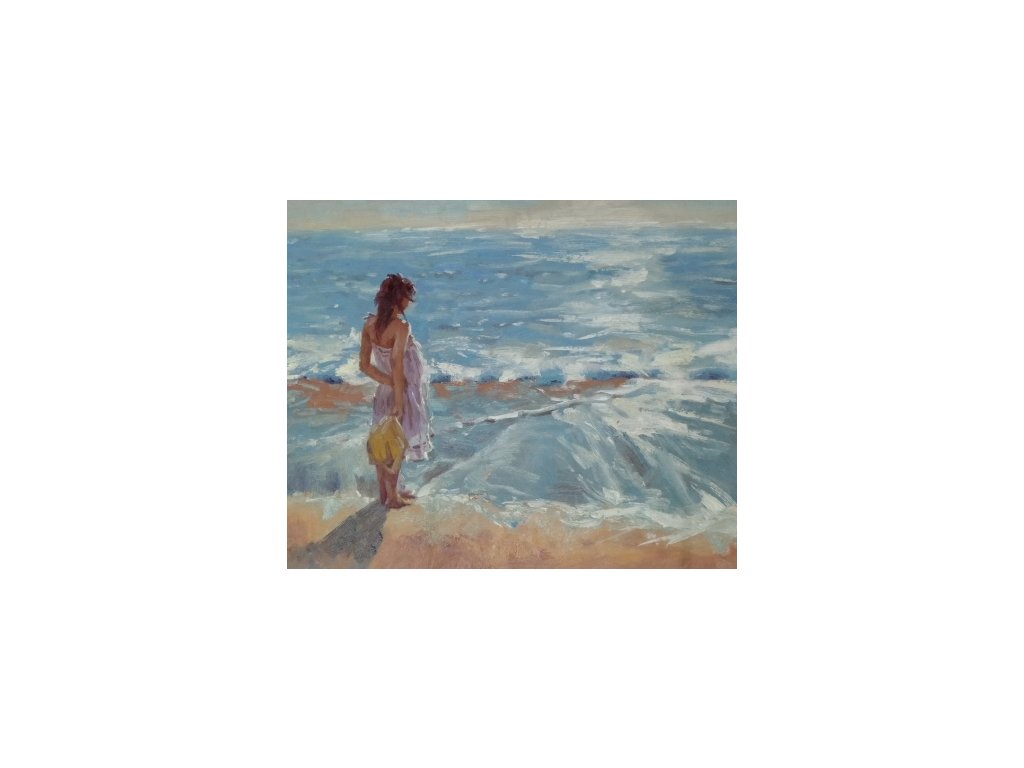Na obraze je zachycena žena na slunné pláži. Obraz je malovaný olejovými barvami na kvalitní malířské plátno vyšší gramáže, napnuté na vypínací (skrytý) 2 cm široký blind rám. Ten je opatřený klínky pro případné dopnutí plátna. Díky probarveným okrajům lze obraz ihned zavěsit na zeď, nebo je možné také zarámování do ozdobného rámu. Nabídku naleznete v sekci rámy a rámování. Součástí je háček určený k zavěšení obrazu.Buďte prvý, kto napíše príspevok k tejto položke.
