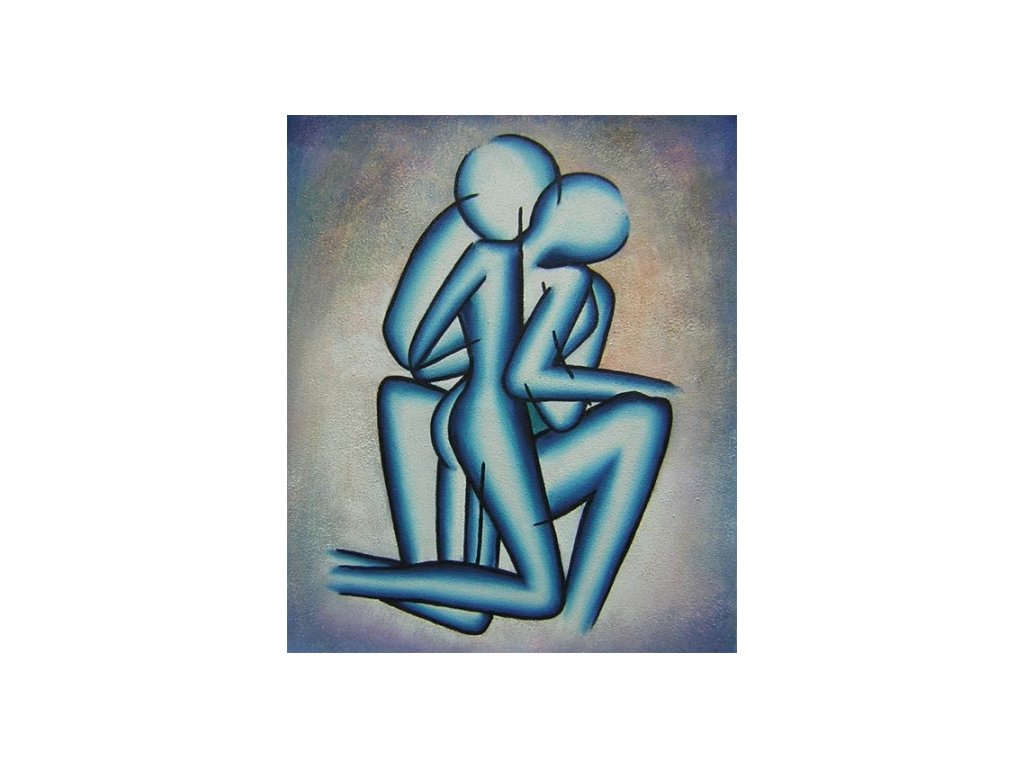 Na obraze je moderním způsobem namalovaná dvojice dvou lidí při polibku. Obraz je laděn do modré barvy. Obraz je malovaný olejovými barvami na kvalitní malířské plátno vyšší gramáže, napnuté na vypínací (skrytý) 2 cm široký blind rám. Ten je opatřený klínky pro případné dopnutí plátna. Díky probarveným okrajům lze obraz ihned zavěsit na zeď, nebo je možné také zarámování do ozdobného rámu. Nabídku naleznete v sekci rámy a rámování. Součástí je háček určený k zavěšení obrazu.Buďte prvý, kto napíše príspevok k tejto položke.