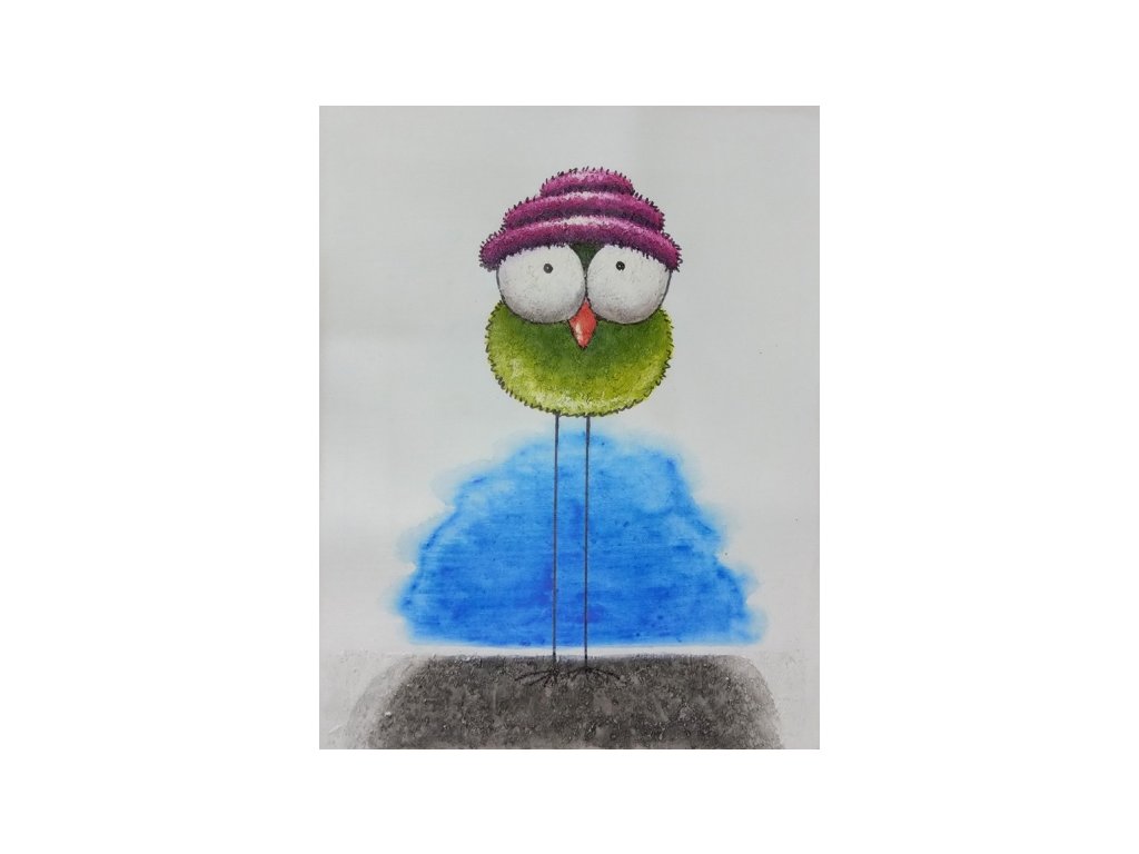 Na vtipně působícím obraze je namalován ptáček s fialovou čepicí. Obraz je malovaný olejovými barvami na kvalitní malířské plátno vyšší gramáže, napnuté na vypínací (skrytý) 2 cm široký blind rám. Ten je opatřený klínky pro případné dopnutí plátna. Díky probarveným okrajům lze obraz ihned zavěsit na zeď, nebo je možné také zarámování do ozdobného rámu. Nabídku naleznete v sekci rámy a rámování. Součástí je háček určený k zavěšení obrazu.Buďte prvý, kto napíše príspevok k tejto položke.