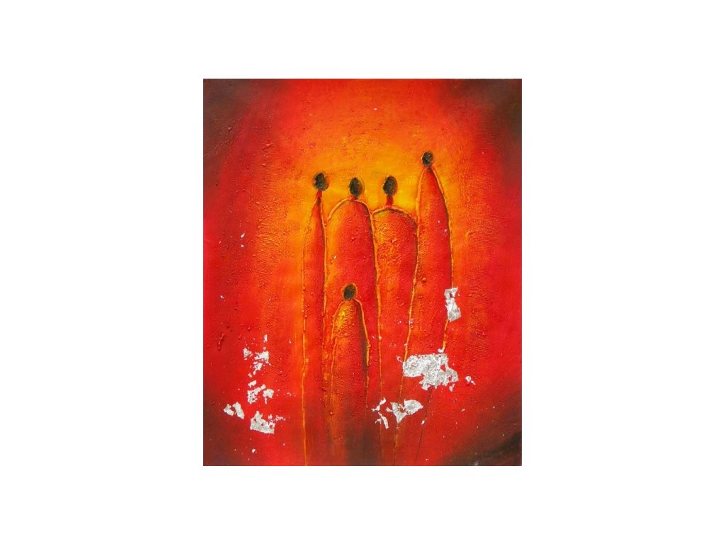Na obraze je namalována skupinka domorodců na oranžovém pozadí. Obraz je malovaný olejovými barvami na kvalitní malířské plátno vyšší gramáže, napnuté na vypínací (skrytý) 2 cm široký blind rám. Ten je opatřený klínky pro případné dopnutí plátna. Díky probarveným okrajům lze obraz ihned zavěsit na zeď, nebo je možné také zarámování do ozdobného rámu. Nabídku naleznete v sekci rámy a rámování. Součástí je háček určený k zavěšení obrazu.Buďte prvý, kto napíše príspevok k tejto položke.