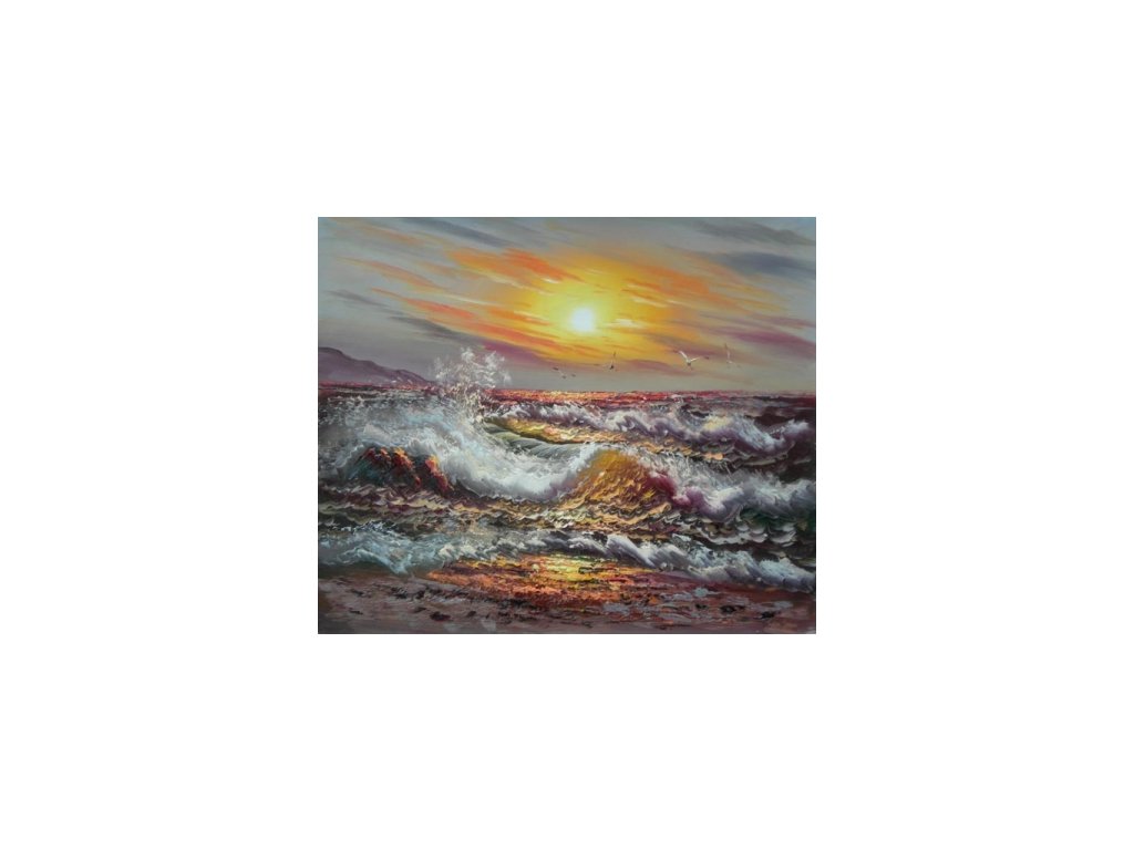 Obraz s motivem bouře na moři. Obraz je malovaný olejovými barvami na kvalitní malířské plátno vyšší gramáže, napnuté na vypínací (skrytý) 2 cm široký blind rám. Ten je opatřený klínky pro případné dopnutí plátna. Díky probarveným okrajům lze obraz ihned zavěsit na zeď, nebo je možné také zarámování do ozdobného rámu. Nabídku naleznete v sekci rámy a rámování. Součástí je háček určený k zavěšení obrazu.