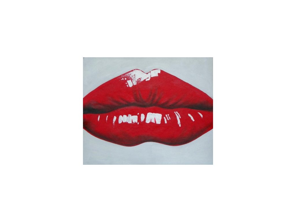 Na obraze jsou namalovány rudé velké rty. Obraz je malovaný olejovými barvami na kvalitní malířské plátno vyšší gramáže, napnuté na vypínací (skrytý) 2 cm široký blind rám. Ten je opatřený klínky pro případné dopnutí plátna. Díky probarveným okrajům lze obraz ihned zavěsit na zeď, nebo je možné také zarámování do ozdobného rámu. Nabídku naleznete v sekci rámy a rámování. Součástí je háček určený k zavěšení obrazu.
