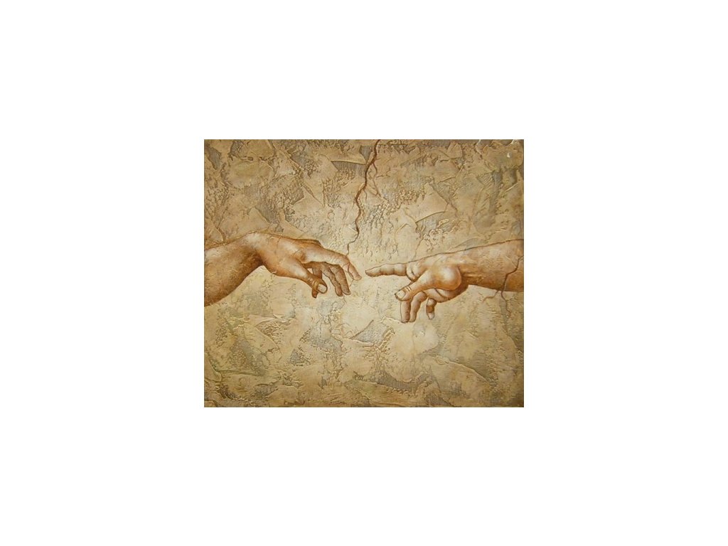 Tento obraz je známý jako reprodukce obrazu Ruce (Stvoření Adama), který namaloval známý Michelangelo. Obraz je malovaný olejovými barvami na kvalitní malířské plátno vyšší gramáže, napnuté na vypínací (skrytý) 2 cm široký blind rám. Ten je opatřený klínky pro případné dopnutí plátna. Díky probarveným okrajům lze obraz ihned zavěsit na zeď, nebo je možné také zarámování do ozdobného rámu. Nabídku naleznete v sekci rámy a rámování. Součástí je háček určený k zavěšení obrazu.