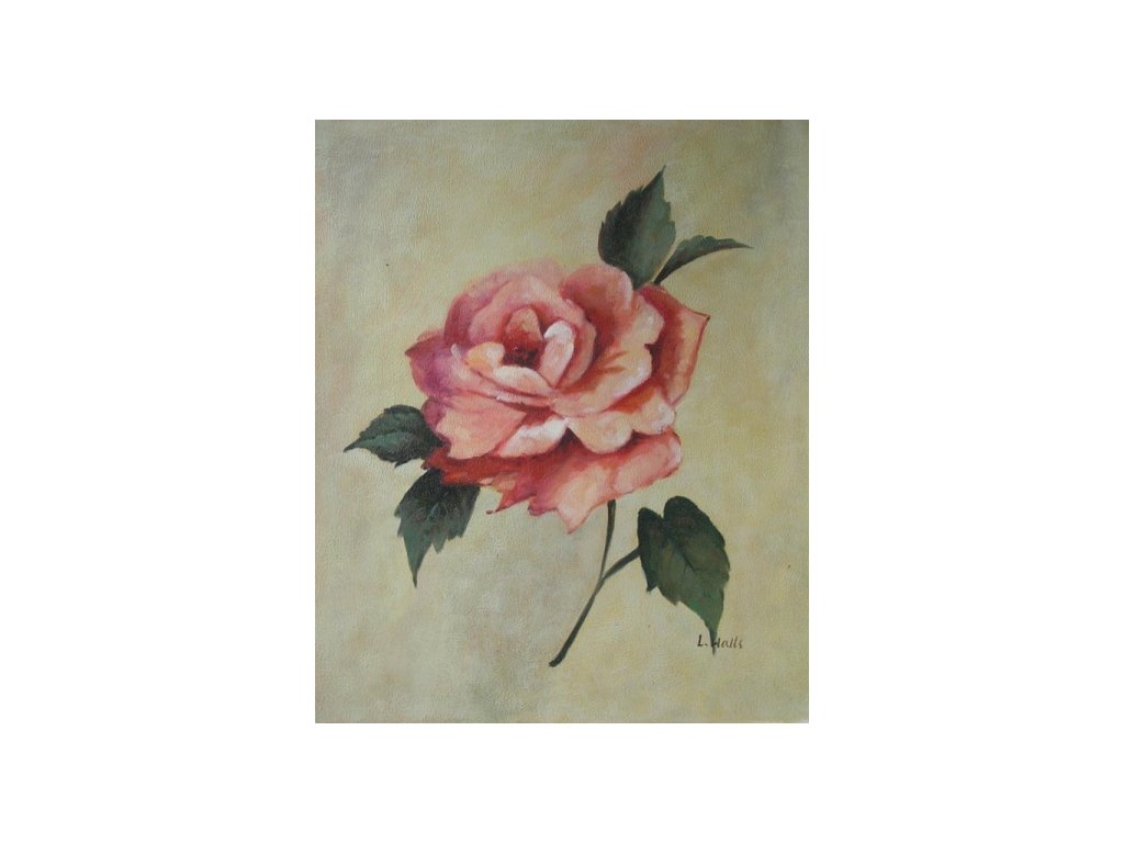 Motivem obrazu je květ růžové růže. Obraz je malovaný olejovými barvami na kvalitní malířské plátno vyšší gramáže, napnuté na vypínací (skrytý) 2 cm široký blind rám. Ten je opatřený klínky pro případné dopnutí plátna. Díky probarveným okrajům lze obraz ihned zavěsit na zeď, nebo je možné také zarámování do ozdobného rámu. Nabídku naleznete v sekci rámy a rámování. Součástí je háček určený k zavěšení obrazu. Velikost obrazu je 50 x 40 cm.
