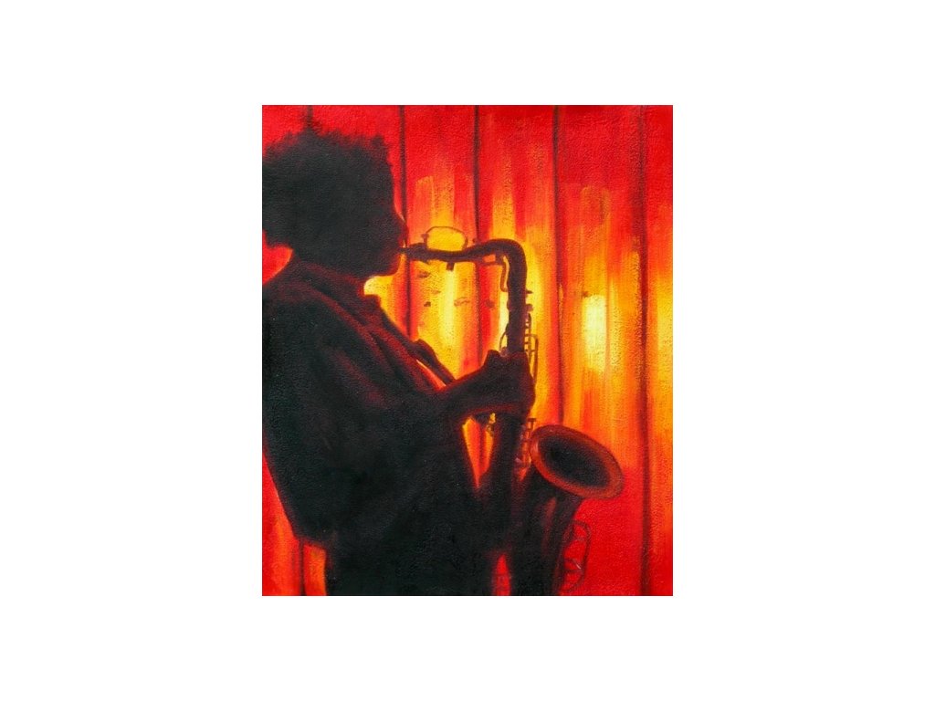 Na obrazu je namalován muž hrající na saxofon před červenou oponou. Obraz je malovaný olejovými barvami na kvalitní malířské plátno vyšší gramáže, napnuté na vypínací (skrytý) 2 cm široký blind rám. Ten je opatřený klínky pro případné dopnutí plátna. Díky probarveným okrajům lze obraz ihned zavěsit na zeď, nebo je možné také zarámování do ozdobného rámu. Nabídku naleznete v sekci rámy a rámování. Součástí je háček určený k zavěšení obrazu.Buďte prvý, kto napíše príspevok k tejto položke.