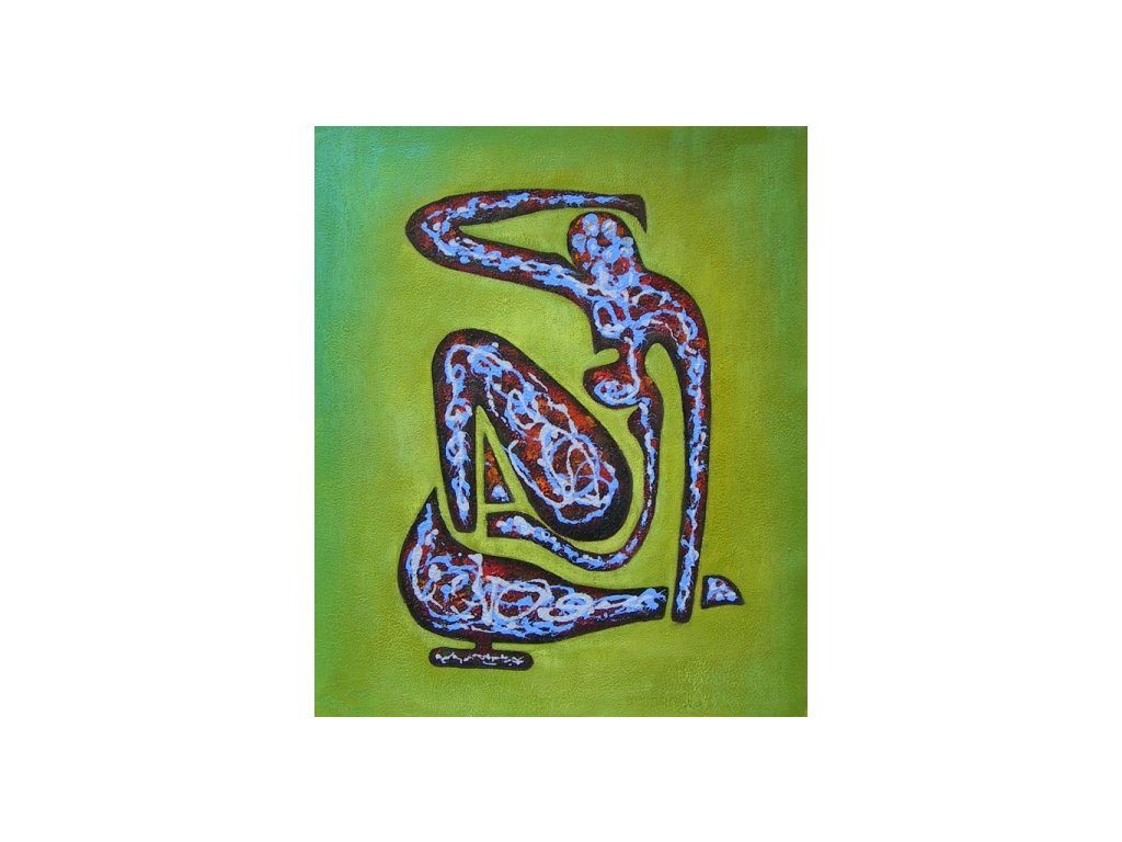 Na obraze je namalována sedící postava. Obraz je malovaný olejovými barvami na kvalitní malířské plátno vyšší gramáže, napnuté na vypínací (skrytý) 2 cm široký blind rám. Ten je opatřený klínky pro případné dopnutí plátna. Díky probarveným okrajům lze obraz ihned zavěsit na zeď, nebo je možné také zarámování do ozdobného rámu. Nabídku naleznete v sekci rámy a rámování. Součástí je háček určený k zavěšení obrazu.