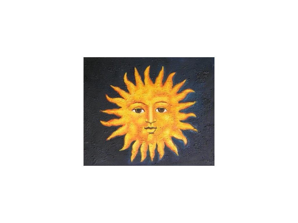 Motivem obrazu je velké zářivé slunce. Obraz je malovaný olejovými barvami na kvalitní malířské plátno vyšší gramáže, napnuté na vypínací (skrytý) 2 cm široký blind rám. Ten je opatřený klínky pro případné dopnutí plátna. Díky probarveným okrajům lze obraz ihned zavěsit na zeď, nebo je možné také zarámování do ozdobného rámu. Nabídku naleznete v sekci rámy a rámování. Součástí je háček určený k zavěšení obrazu.