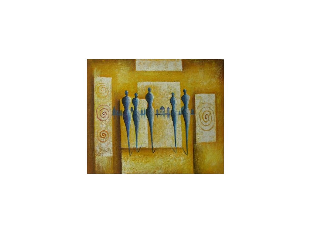 Motivem obrazu jsou šedé sochy siluet na žlutém pozadí. Obraz je malovaný olejovými barvami na kvalitní malířské plátno vyšší gramáže, napnuté na vypínací (skrytý) 2 cm široký blind rám. Ten je opatřený klínky pro případné dopnutí plátna. Díky probarveným okrajům lze obraz ihned zavěsit na zeď, nebo je možné také zarámování do ozdobného rámu. Nabídku naleznete v sekci rámy a rámování. Součástí je háček určený k zavěšení obrazu.Buďte prvý, kto napíše príspevok k tejto položke.
