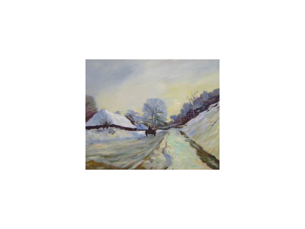 Obraz s motivem zasněžené krajiny, známá reprodukce od Moneta. Obraz je malovaný olejovými barvami na kvalitní malířské plátno vyšší gramáže, napnuté na vypínací (skrytý) 2 cm široký blind rám. Ten je opatřený klínky pro případné dopnutí plátna. Díky probarveným okrajům lze obraz ihned zavěsit na zeď, nebo je možné také zarámování do ozdobného rámu. Nabídku naleznete v sekci rámy a rámování. Součástí je háček určený k zavěšení obrazu.Buďte prvý, kto napíše príspevok k tejto položke.