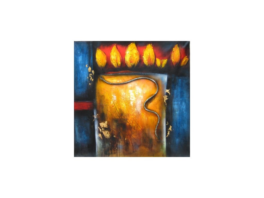 Abstraktní obraz s názvem svícen . Obraz je malovaný olejovými barvami na kvalitní malířské plátno vyšší gramáže, napnuté na vypínací (skrytý) 2 cm široký blind rám. Ten je opatřený klínky pro případné dopnutí plátna. Díky probarveným okrajům lze obraz ihned zavěsit na zeď, nebo je možné také zarámování do ozdobného rámu. Nabídku naleznete v sekci rámy a rámování. Součástí je háček určený k zavěšení obrazu.