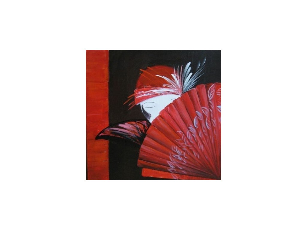 Motivem tohoto obrazu je namalována žena, která se schovává za vějířem. Obraz je malovaný olejovými barvami na kvalitní malířské plátno vyšší gramáže, napnuté na vypínací (skrytý) 2 cm široký blind rám. Ten je opatřený klínky pro případné dopnutí plátna. Díky probarveným okrajům lze obraz ihned zavěsit na zeď, nebo je možné také zarámování do ozdobného rámu. Nabídku naleznete v sekci rámy a rámování. Součástí je háček určený k zavěšení obrazu.Buďte prvý, kto napíše príspevok k tejto položke.
