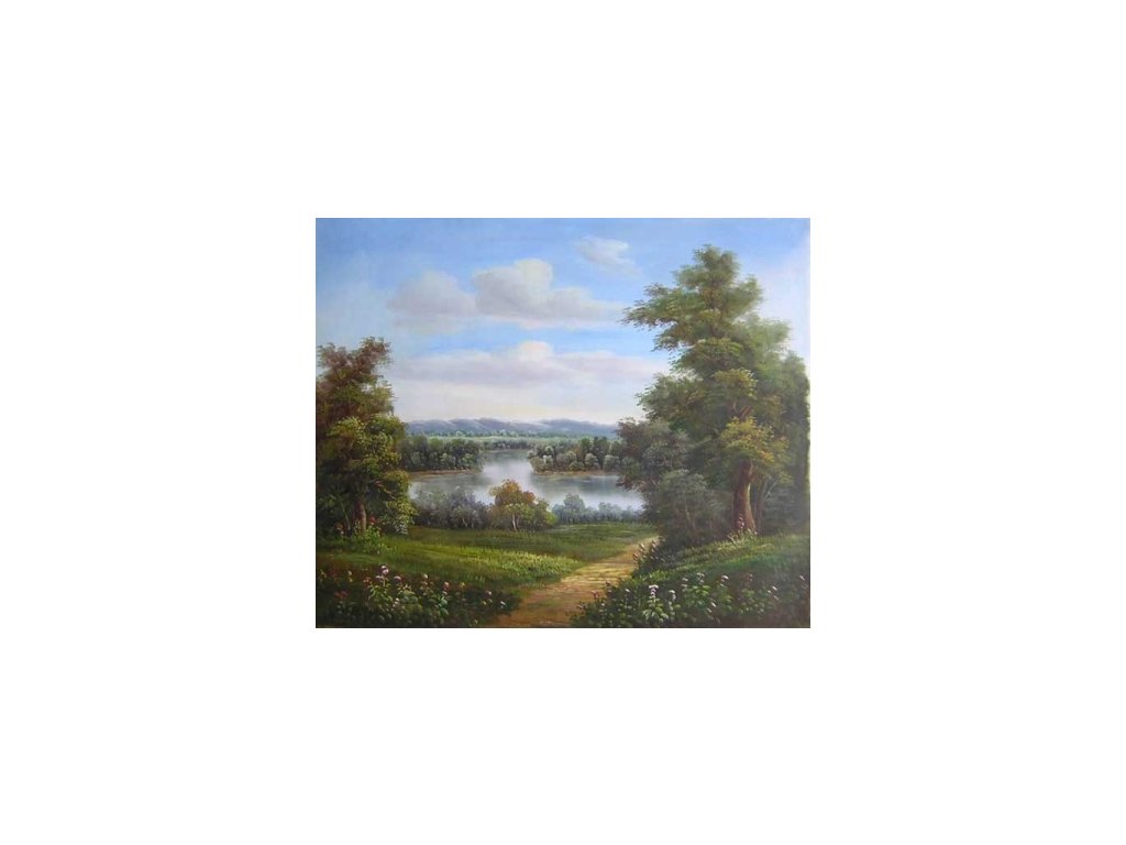 Motivem obrazu je krajina s jezerem obklopeným stromy. Obraz je malovaný olejovými barvami na kvalitní malířské plátno vyšší gramáže, napnuté na vypínací (skrytý) 2 cm široký blind rám. Ten je opatřený klínky pro případné dopnutí plátna. Díky probarveným okrajům lze obraz ihned zavěsit na zeď, nebo je možné také zarámování do ozdobného rámu. Nabídku naleznete v sekci rámy a rámování. Součástí je háček určený k zavěšení obrazu.Buďte prvý, kto napíše príspevok k tejto položke.