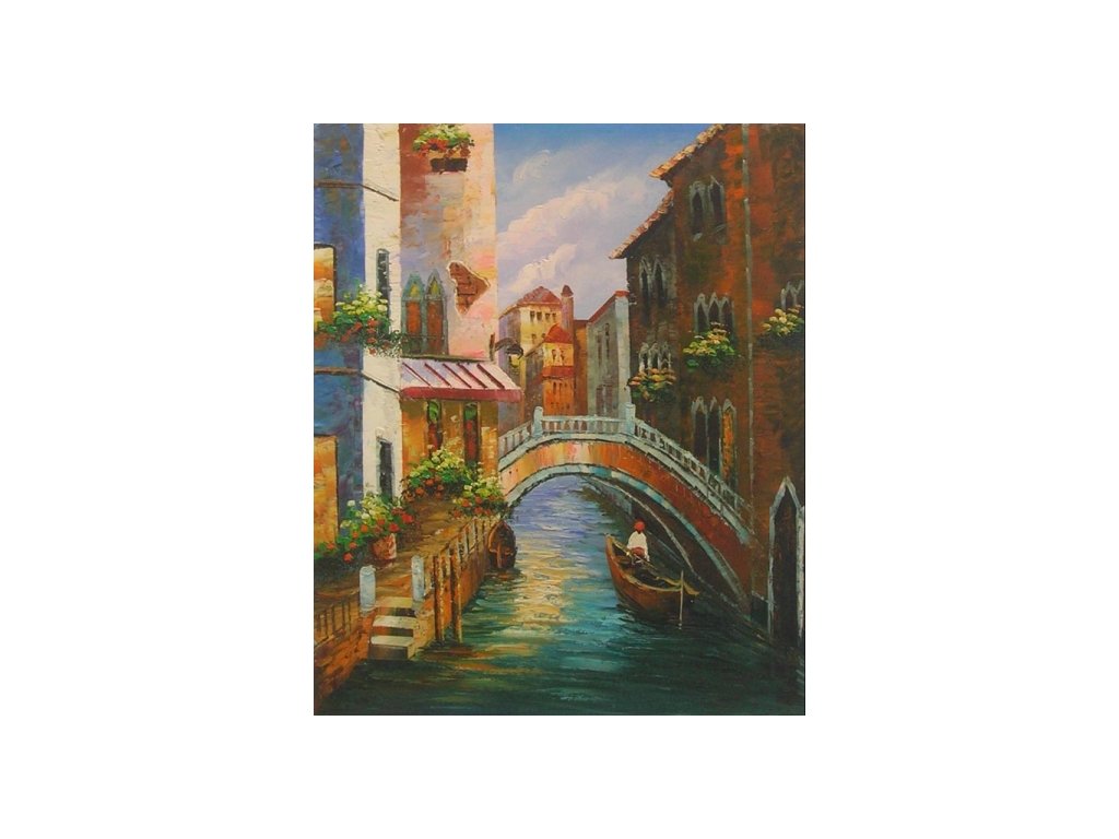 Na obrazu je namalována typická Benátská ulička s gondolou. Obraz je malovaný olejovými barvami na kvalitní malířské plátno vyšší gramáže, napnuté na vypínací (skrytý) 2 cm široký blind rám. Ten je opatřený klínky pro případné dopnutí plátna. Díky probarveným okrajům lze obraz ihned zavěsit na zeď, nebo je možné také zarámování do ozdobného rámu. Nabídku naleznete v sekci rámy a rámování. Součástí je háček určený k zavěšení obrazu.Buďte prvý, kto napíše príspevok k tejto položke.